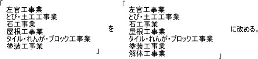 建設業法等の一部を改正する法律(平成26年6月4日法律第55号)により建設業の種類(業種)に「解体工事業」を追加(新設)する規定等の施行に伴い、