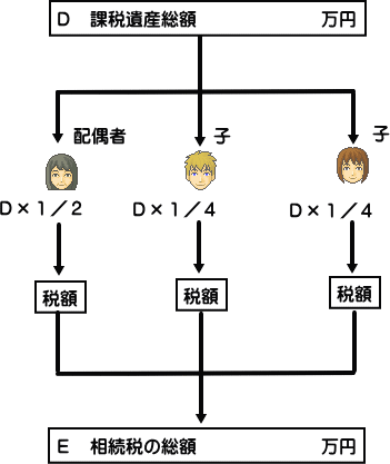 C 課税価額の合計 − 基礎控除額 = D 課税遺産総額