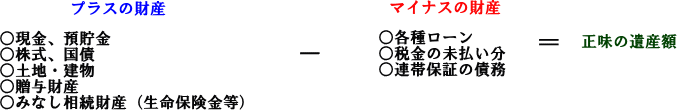 | A 評価額の合計 − B マイナス(債務)の合計 = C 課税価額の合計 |